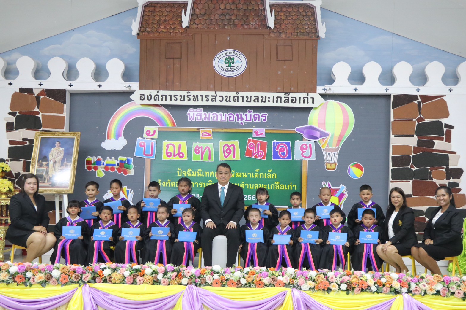 รับอนุบัตร "บัณฑิตน้อย" ในโอกาสสำเร็จการศึกษาจากศูนย์พัฒนาเด็กเล็ก สังกัดองค์การบริหารส่วนตำบลมะเกลือเก่า ทั้ง 7 แห่ง